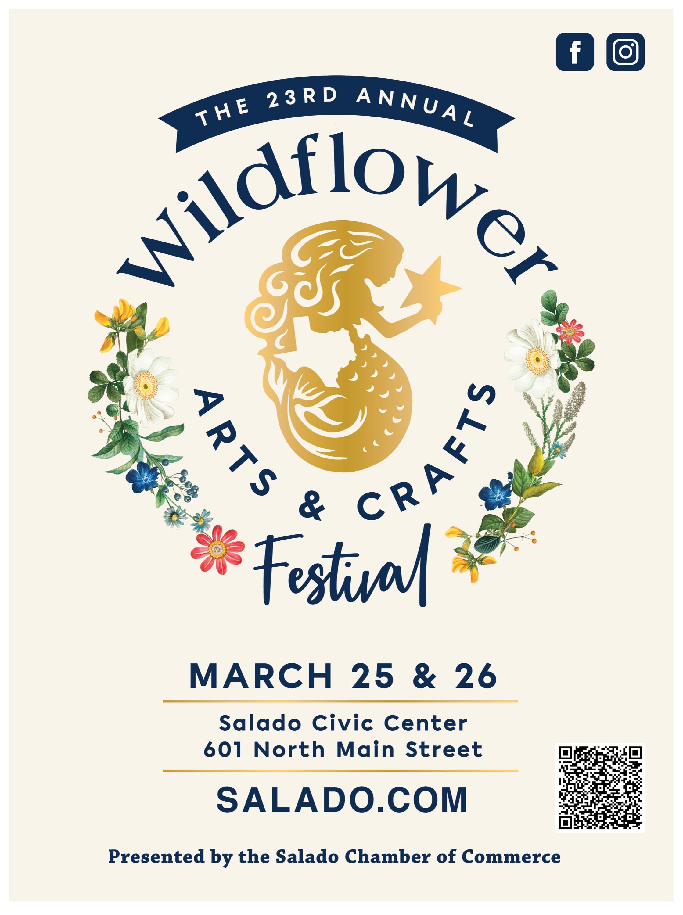 Salado’s 23rd Annual Wildflower Arts & Crafts FestivalSpringtime event includes arts & crafts, food, live music, and more!The 23rd Annual Wildflower Arts & Crafts Festival will be held in Salado, TX Saturday, March 25th & Sunday, March 26th.Admission is FREE.Enjoy this family-friendly festival by strolling through numerous arts & crafts vendors selling extraordinary handcrafted items from all over the state. Shop from a large variety of talented crafters including; woodworking, jewelry, original paintings, photography, pottery, toymakers, soap makers, knitting/crochet, embroidery, and more!